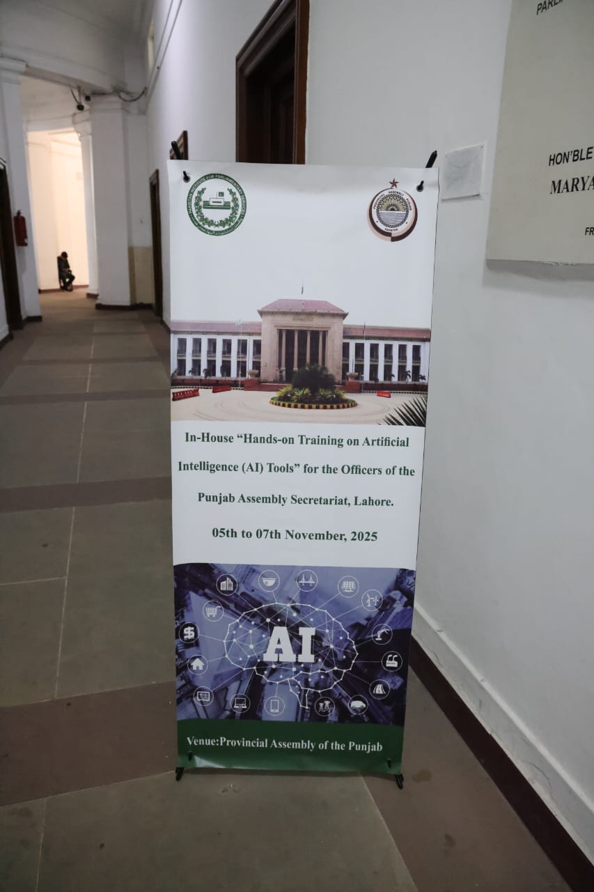 The Pakistan Institute for Parliamentary Services (PIPS) is organizing a three-day In-house training on Artificial Intelligence (AI) for the officers of the Punjab Assembly Secretariat. A total of 40 participants attended the training, which focuses on developing practical skills to apply AI tools for improved efficiency, innovation, and digital transformation in public administration.