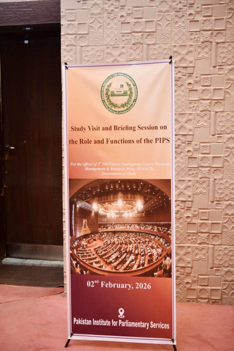 The Pakistan Institute for Parliamentary Services (PIPS) hosted a delegate comprising 30 officers of the Mid-Career Management Course (MCMC), Training Management and Research Wing, SGA&CD, Government of Sindh, along with five faculty members, on Monday, 2 February 2026. The objective was to brief the participants with the role, mandate, and functions of the PIPS in supporting and strengthening parliamentary processes.