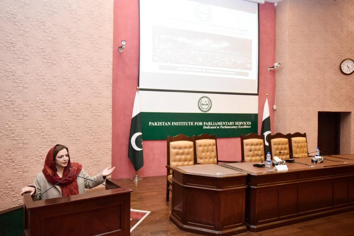 A comprehensive presentation was delivered by Mr. Muhammad Aamir Khalil, Director General (Legislation), PIPS. He highlighted the Institute’s objectives, core values, governance structure, and statutory functions as enshrined in the PIPS Act, 2008. Mr. Khalil elaborated on how PIPS supported Parliamentarians and Parliamentary Secretariat through legislative assistance, research services, training programmes, and professional development initiatives. Moreover, he highlighted that PIPS in accordance with its statutory mandate was also conducting specialized training programmes for officers of the federal government to enhance their understanding of the working of the legislature, its constitutional role, responsibilities and its working relationship with the executive. During the session, the participants eagerly asked questions about the mandate of various wings of the PIPS, namely Legislation, Capacity Building and Development, Parliamentary Development Programme and Coordination, as well as Research and Library. The participants appreciated PIPS’ pivotal role in advancing effective parliamentary practices and fostering a deeper understanding of parliamentary business.