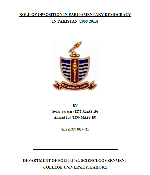 ROLE OF OPPOSITION IN PARLIAMENTARY DEMOCRACY IN PAKISTAN (2008-2013)